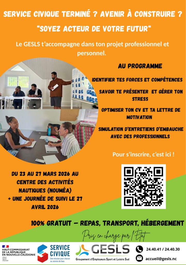 Le dispositif est reconduit cette année, dont la 1ère session 2026 aura lieu du 2 au 6 mars. Contactez le GESLS à developpement@gesls.nc ou au 24.40.30 .