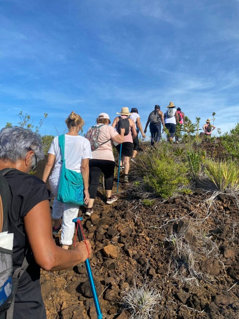 Dans la commune du Mont-Dore, 18 créneaux de marches gratuites d’une heure et demie ont été organisés tous les samedis matin entre avril et septembre 2025. L’objectif principal était de permettre à des mondoriennes de découvrir les bienfaits d’une pratique sportive régulière et de retrouver confiance en elles. Les sessions étaient animées et encadrées par une éducatrice sportive du Mont-Dore et un formateur en marche nordique.